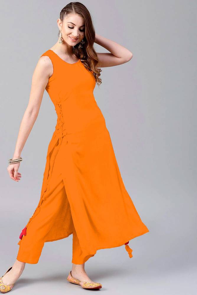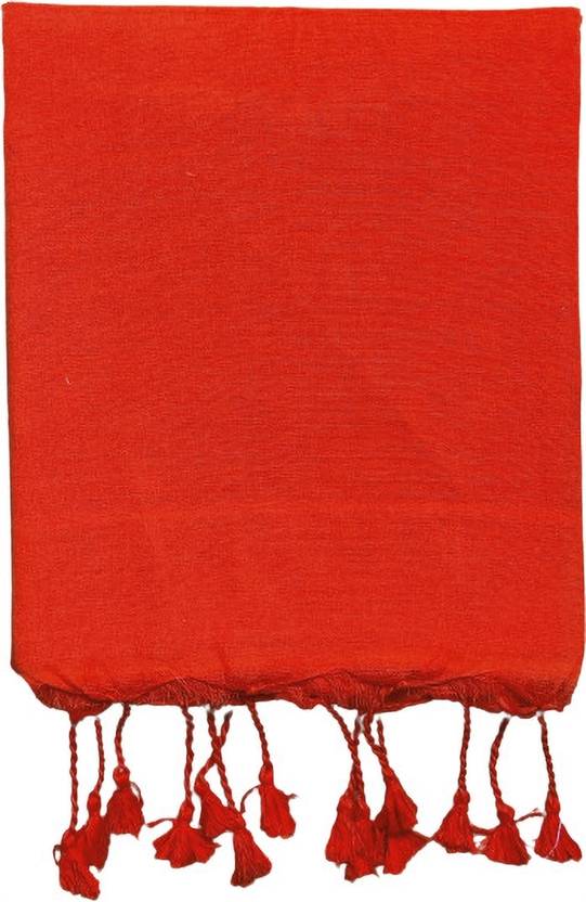 Radha Krishna Saree Solid/Plain Handloom Handloom Cotton Silk Saree (Orange)