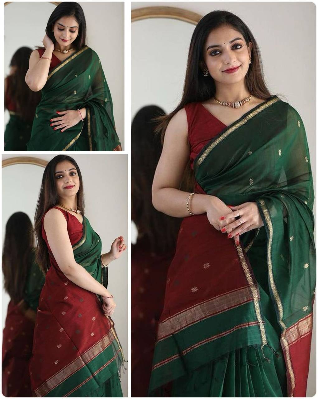 The gorgeous cotton Silk soft duel tone colour khadi saree is a perfect traditional ethnic wear blended with modernity.the light weight material will be soft on your skin and will make you feel beautiful and confident at every where you go.Monde Avenir collection brings you exclusively cotton soft single,duel tone colours khadi saree with blouse piece available this rare collection will definitely add colours in your wordrobe and will keep you in sync with high fashion.