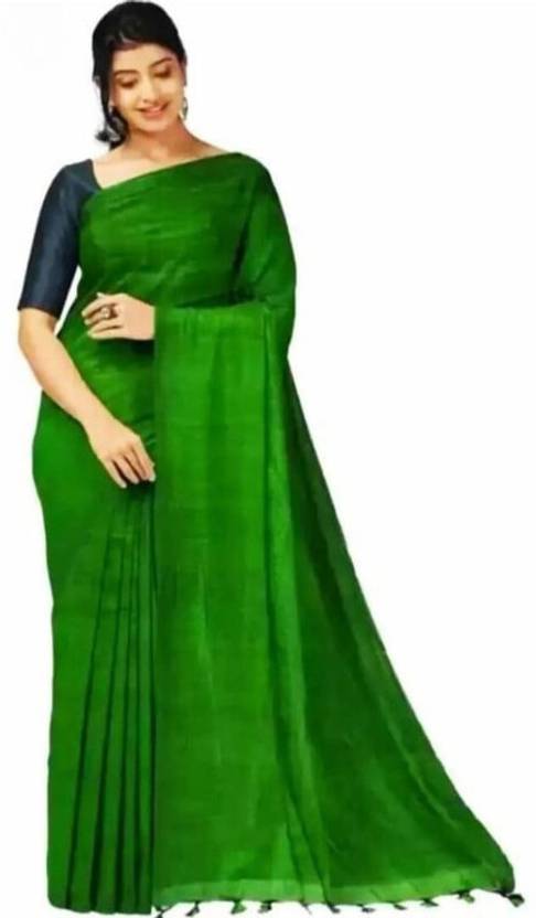 Radha Krishna Saree Solid/Plain Handloom Cotton Silk Saree  (Green)