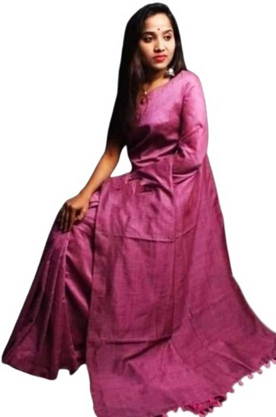 Radha Krishna Saree Solid/Plain Handloom Cotton Silk Saree  (Pink)