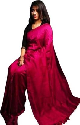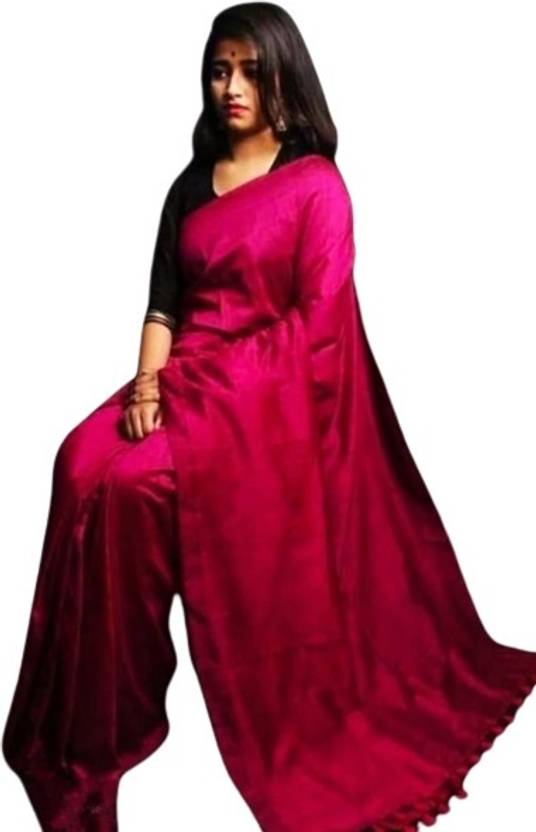 Radha Krishna Saree Solid/Plain Handloom Cotton Silk Saree  (Pink)