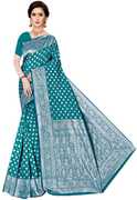 A Jacquard Saree is characterized by the complex, woven-in pattern created on a special loom, giving it a rich texture and luxurious look.