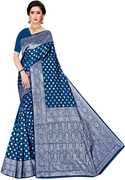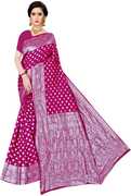 * This saree is a masterpiece of textile art, defined by the specialized Jacquard weaving technique, which creates intricate, self-designed patterns directly into the silk fabric itself • FabricSilk Jacquard (may be pure silk, art silk, or a rich silk blend like Lichi Silk or Banarasi Silk). •WeaveThe Jacquard technique ensures the elaborate motifs (like florals, geometric shapes, or traditional Indian patterns) are woven into the fabric structure, giving them a rich, slightly raised texture that is not printed or embroidered. •EmbellishmentSilver Zari Weaving (often referred to as 'Silver Zari Work' or 'Silver Buttis'). The intricate designs, especially on the border and the pallu (decorative end-piece), are highlighted with lustrous silver-colored metallic thread. •Look & FeelThe silk provides a beautiful, luxurious sheen and a structured, elegant drape. The Jacquard and Zari work lend the saree a grand and regal appearance. •OccasionPerfect for weddings, formal receptions, festive celebrations (like Diwali or Navratri), and traditional gatherings Events.
