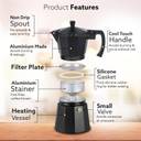 RADHE ALLIANCE Classic Moka Pot, Stovetop,Espresso Coffee Maker, 300ML, Premium Aluminium Built Personal Coffee Maker (Black)