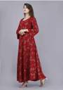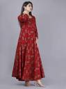 RADHE RADHE Women Printed Viscose Rayon Flared Kurta (Maroon)