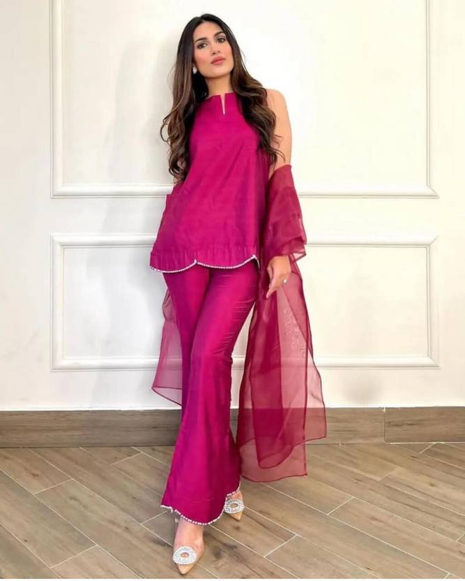 Radhey Trendz Self Design Kurta, Palazzo & Dupatta Set