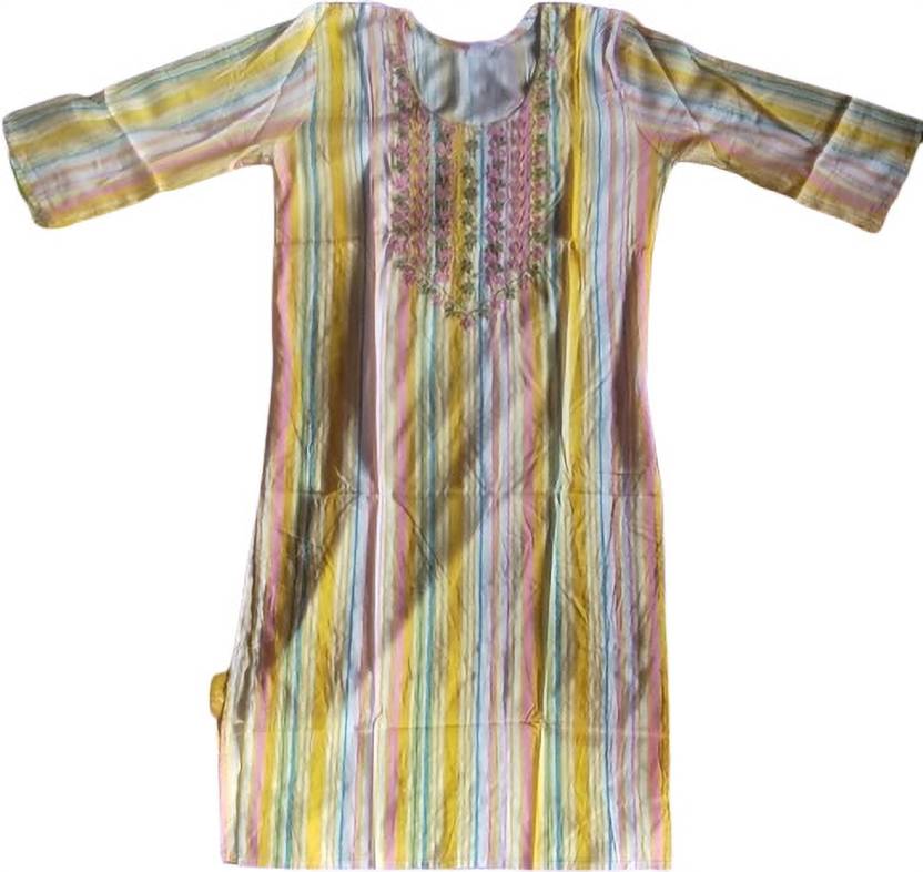 Women Solid Cotton Blend Straight Kurta (Yellow)