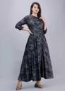 Women Printed Viscose Rayon Anarkali Kurta (Black)