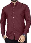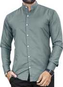 Men Regular Fit Solid Mandarin Collar Casual Shirt