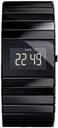 Black digital dial, date and chronograph features, battery operated quartz movement, 3 year warranty, guaranteed authentic, certificate of authenticity, manufacturer box and manual, scratch resistant sapphire crystal, black tone ceramic case and bracelet, 30 meters / 100 feet water resistant, 35mm x 35mm is equal to 1 1/3 x 1 1/3 inch case, 7 inch adjustable bracelet, deployment buckle.