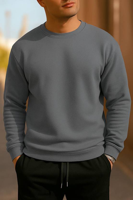 RAE ZONE Solid Men Round Neck Grey T-Shirt