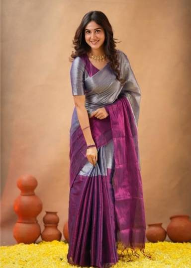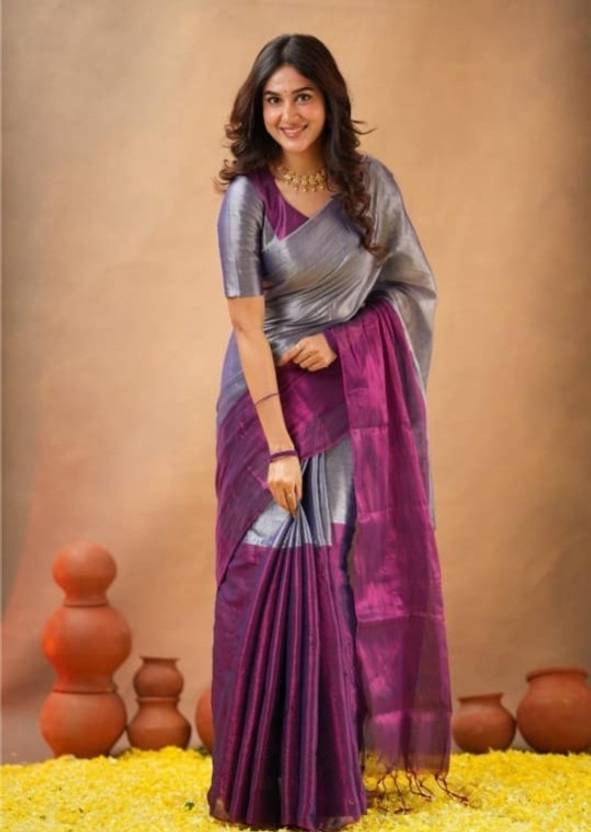 RinkiSaree Self Design Handloom Tissue Saree (Purple)