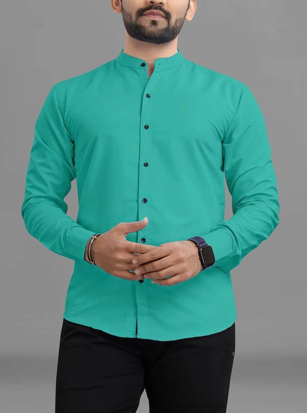 RAHUL LOOK Men Slim Fit Solid Mandarin Collar Casual Shirt