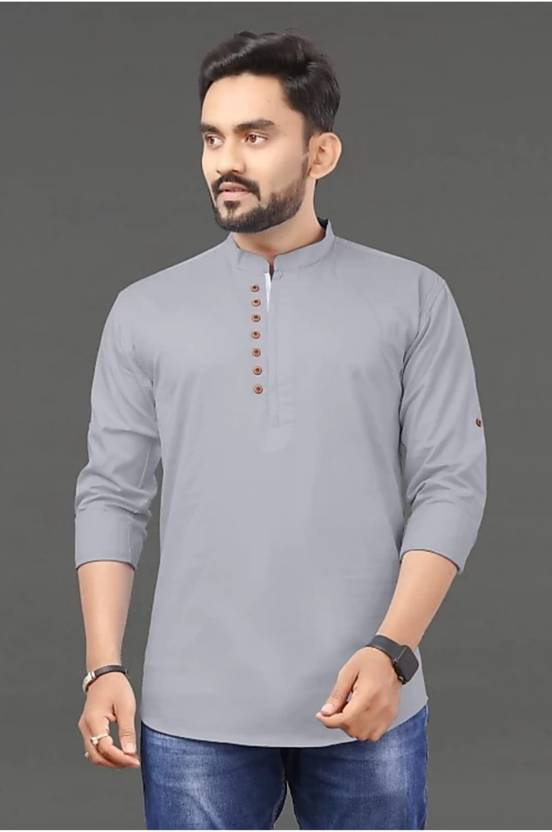 Men Solid Cotton Blend Straight Kurta (Grey)