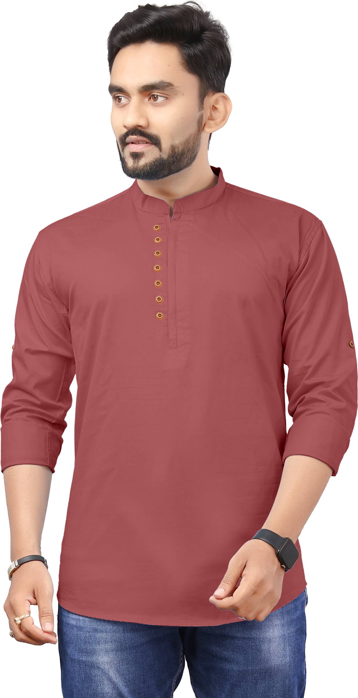 RAHUL LOOK Men Solid Straight Kurta (Pink)