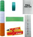 RaiGen Tricolour Bat Grip, G.Toe Guard, G.Tape, 2-Sided Fiber Bat Tape Sheet & Adhesive Chevron (Orange, White, Green, Pack of 5)