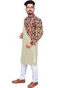 Men Blended Cotton Side Button Design Long Off-White Colour Kurta with Pajama Set