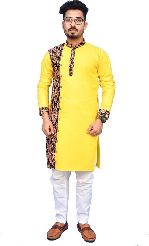Men's Applique Design Straight Cotton Kurta