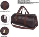 The gym bag is made of tear and water resistant Leatherette; durable zippers and enhanced by strong stitching at major stress points provide long-lasting durability against daily activities. Designed with a main large compartment and one side elastic mesh pocket, makes it spacious enough to put your clothes, shoes, water bottles, sports equipment etc.