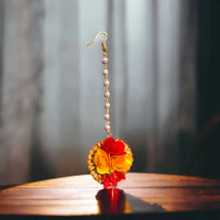 This product stands out with its elegant handmade design. Each maang tikka has been crafted, making it a distinctive piece of jewellery. The floral pattern adds a touch of sophistication to any traditional attire. These elements are unified to create a timeless look that can complement various outfits, creating a lasting impression.