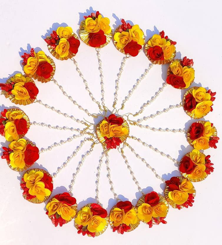 Crafted with attention to detail, each piece in this pack of 20 showcases excellent craftsmanship. The handmade nature of these maang tikkas ensures that each piece is unique. The detailed floral design and the use of beads and pearls reflect the skill involved in creating these accessories. This craftsmanship guarantees a high-quality finish that stands the test of time.