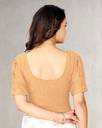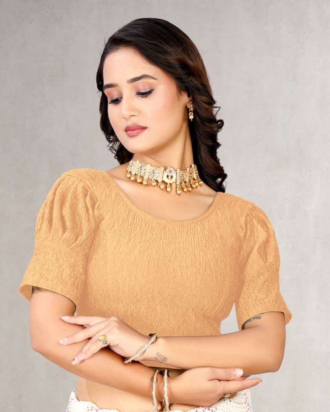 Stretchable Fabric Round Neck Puff Sleeve Design Elbow Length Sleeve