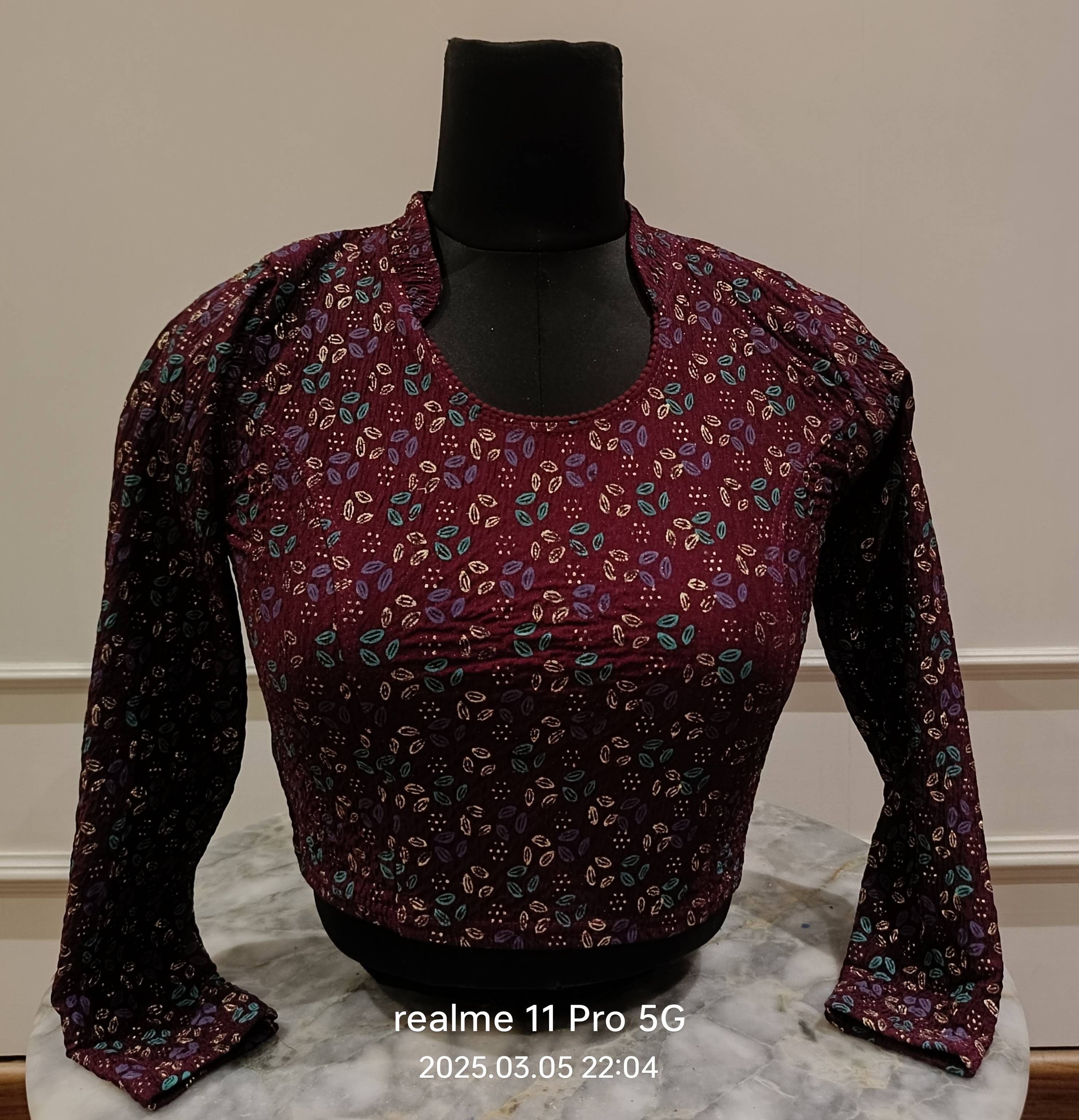 STRETCHABLE BLOUSE, FULL SLEEVE STYLE, ROUND NECK, FOIL PRINT WORK