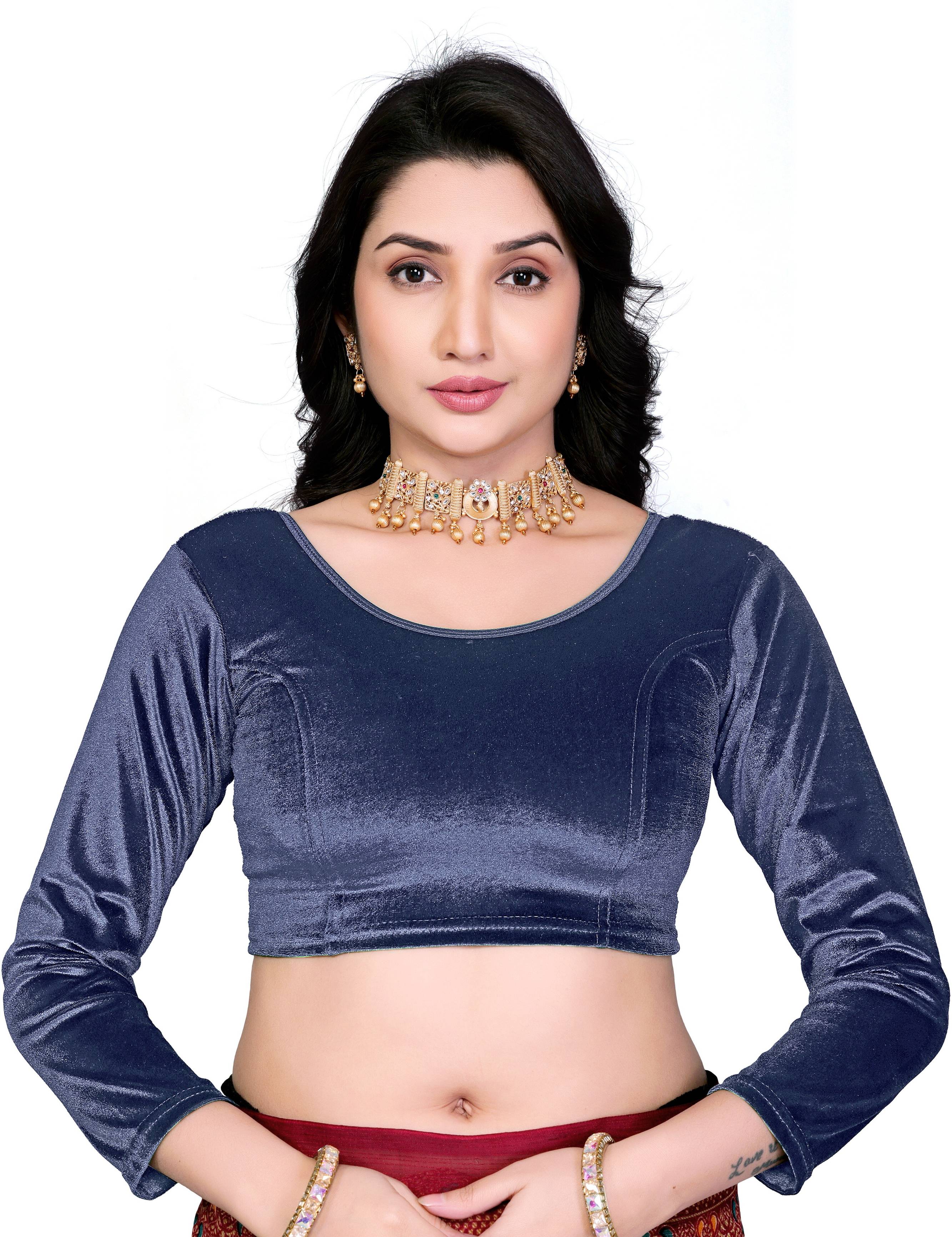 Blouse, a masterpiece of sophistication and allure that strikes a chord of elegance in every ensemble. Crafted from luscious velvet, this blouse exudes an air of luxury, wrapping you in a cocoon of opulence and charm. With a round neckline reminiscent of a grand stage, this blouse sets the scene for elegance and grace. Its 15-inch length ensures a harmonious balance, draping effortlessly over your silhouette with poise and refinement. The pièce de résistance of this ensemble is its captivating 21-inch sleeves, evoking the crescendo of a musical symphony with every movement. Like a symphony conductor, they command attention, infusing your look with drama and allure that captivates the senses. Designed for the modern muse, this blouse offers more than just style—it offers comfort and versatility. The stretchable fabric moves with you, allowing you to dance through life with ease and confidence. Compose your own fashion opus with the Velvet