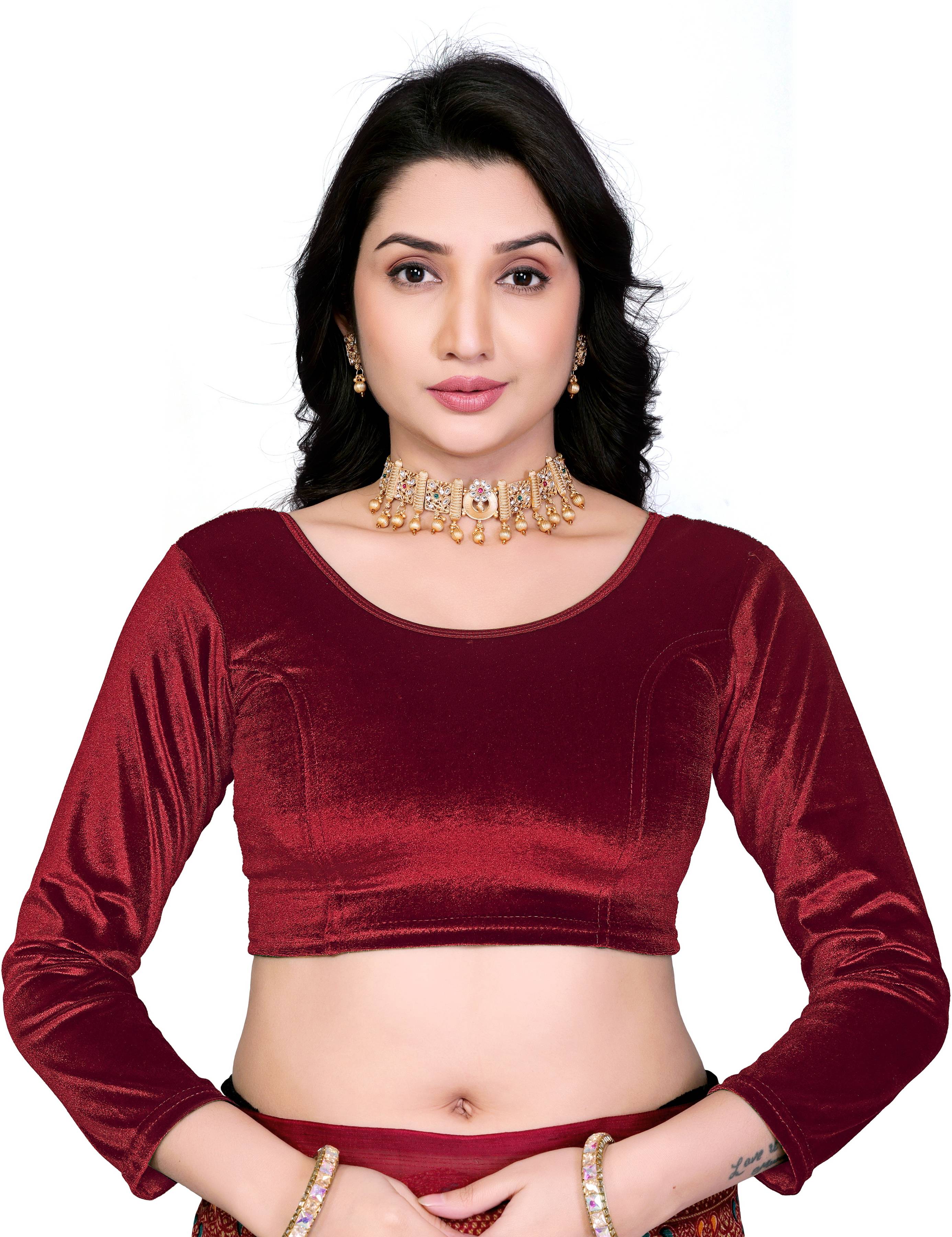 STRETCHABLE, FULL SLEEVE, VELVET BLOUSE