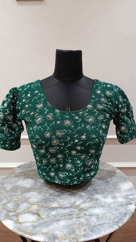 Stretchable Blouse, Foil Print Work, Elbow Sleeve, Puff Baloon Sleeve Style, Round Neck, Length 14/15 Inch, Fabric Cotton Lycra, Available in 9 Colors, Size available from 30 to 40 inch