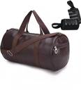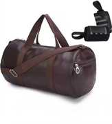 Material : Outer Material - Premium leatherette Fabric, Inner Material – Soft Polyester, Color : Brown, Capacity : 23 Liters, 1 Large Double Zip Closure Compartment, 1 external Mesh Organizer Pocket for the earphones, ID card, Sanitizer, House keys, Fitness Band. 1 Main Compartment for all your Gym Clothes, Gym belt, towel, Gym gloves, shaker, shoe Pair etc., Design : Design with Premium Leatherette Heavy Quality Material. 3.8 Cm Wide and 125 cm Long Adjustable Handle and Double side easy carry handle., Manufacturing : This Product is made in INDIA By “The INDIAN KARIGAR “ and pass though the many quality checks and tests., Suitable : Raisons Brown Gym Bag / Duffel bag is suitable for gym, Day trip casual round bag, travel bag is suitable for men women boys and Girls. This Bag is trending For Gift Purpose