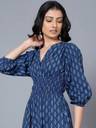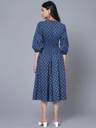 Printed Crepe Stitched Flared/A-line Gown (Dark Blue)