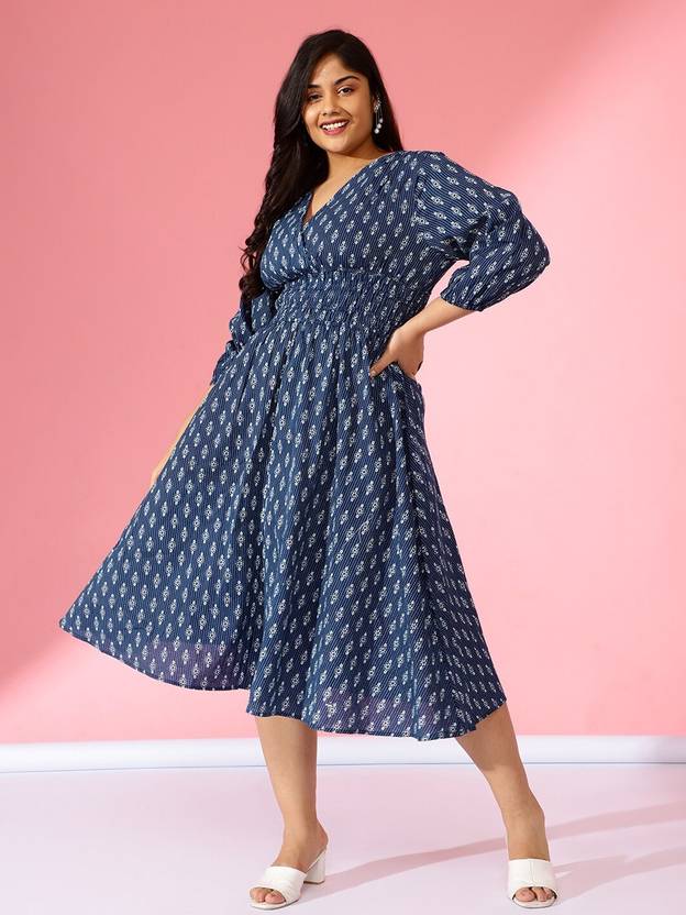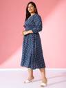 Women Abstract Polyester Anarkali Kurta (Dark Blue)