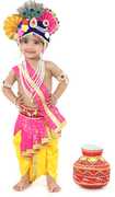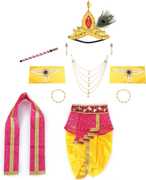Raj Costumes Little Baby Krishna krishan ji kanha Jewellery Accessories for Kids Boys Girls Janmashtami Set of 5 items ( Special 5 Layer Mala, MUKUT , Mor Pankh, 1 Pair Baju Band, Basuri FLUTE ) Kids Ornaments