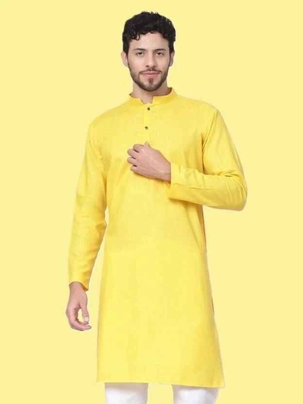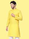 HOC's Men Solid Cotton Blend Straight Kurta (Yellow)
