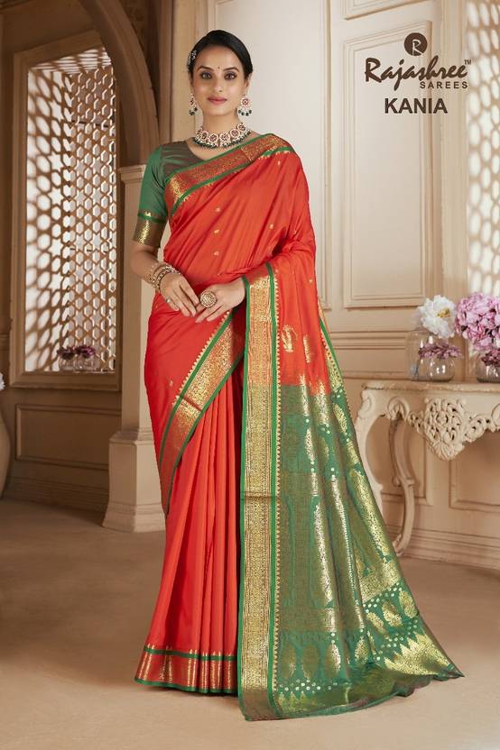 Rajashree sarees Woven Paithani Silk Blend Saree (Orange)