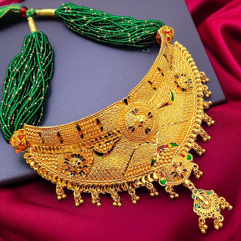 Elevate your ethnic charm with this exquisite Aad Jewellery Set with Meenakari Work, designed especially for women and girls who adore traditional elegance. Inspired by the royal Rajasthani heritage, this beautifully handcrafted Aad set features intricate Meenakari (enamel) detailing, vibrant color accents, and antique gold polish for a regal look. The set includes a bold Aad-style choker necklace making it a perfect match for bridal wear, festive outfits, and traditional attire.