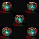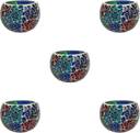 RajasthanKraft Handcrafted Handmade Crackle Glass Tea Light Holder Brass Candle Holder Set (Multicolor, Pack of 5)