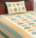 RAJDEVI JAIPUR PRINTS Cotton Single Flat 144 TC Jaipuri Prints Bedsheet (Pack of 1, Aqua)