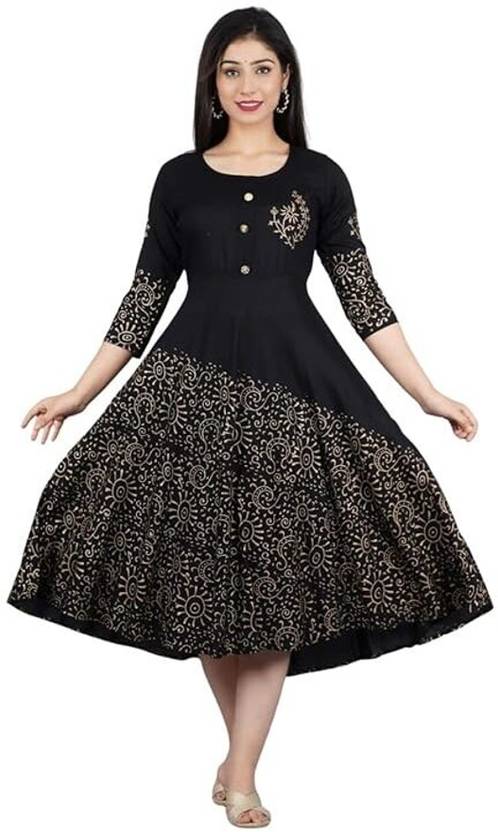 Women Printed Cotton Blend Anarkali Kurta (Black)