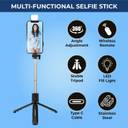 RajibTel K2 Selfie Stick with Tripod Stand, 3 in 1 Multifunctional design, Rechargable LED Bluetooth Selfie Stick (Black, Remote Included)