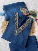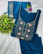 Women Silk Blend Kurti Palazzo Dupatta Set
