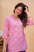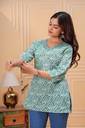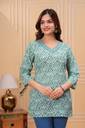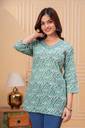 Pure Cotton Comfort: Crafted with 100% breathable cotton for maximum comfort in all seasons, Beautiful Printed Design: Vibrant yet elegant prints that elevate your everyday outfit, Office to Outing Versatility: This is your go-to short kurta for women office wear, yet it's style is enough for outings, shopping, or brunch with friends. Designed as the ideal kurti for jeans or short kurta for women on jeans for a chic, modern look, Easy Maintenance: The colorfast prints and durable stitching mean it stays looking new wash after wash.