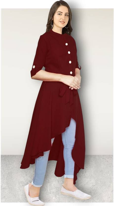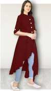Women Solid Polyester Frontslit Kurta (Maroon)