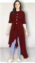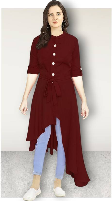 Women Solid Polyester Frontslit Kurta (Maroon)