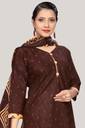 Beautiful Suit look pretty like never before.Wearing this Brown Color Suit which made from Rajnandini with Beige Colored Block Print Cotton Blend Bottom and Brown & Beige Colored Cotton Blend Dupatta.Suit has also decorative work like Block Print with Fancy buttons.This beautiful suit features a classy Printed Work all over,which makes it a smart pick for all occasions. You can wear this Suit in different styles. You can wear it occasionally or casually.