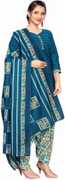 Cotton Printed Black Kurta, Salwar & Dupatta Set