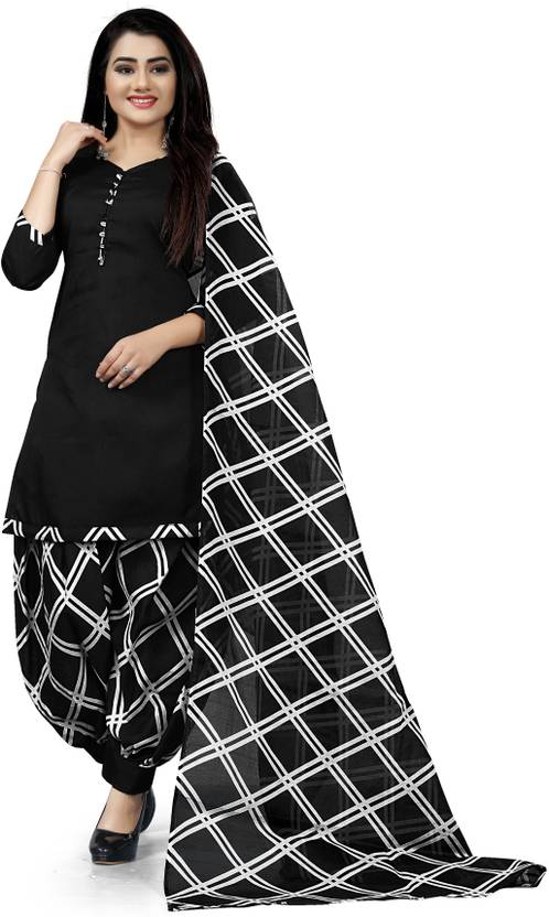 Beautiful Suit look pretty like never before.Wearing this Black Color Suit which made from Rajnandini with Black and White Colored Cotton Blend Bottom and Black and White Colored Cotton Blend Dupatta.Suit has also decorative work like Top : solid , Dupatta And Bottom : Geometric Checks Print.This beautiful suit features a classy Printed Work all over,which makes it a smart pick for all occasions. You can wear this Suit in different styles. You can wear it occasionally or casually.