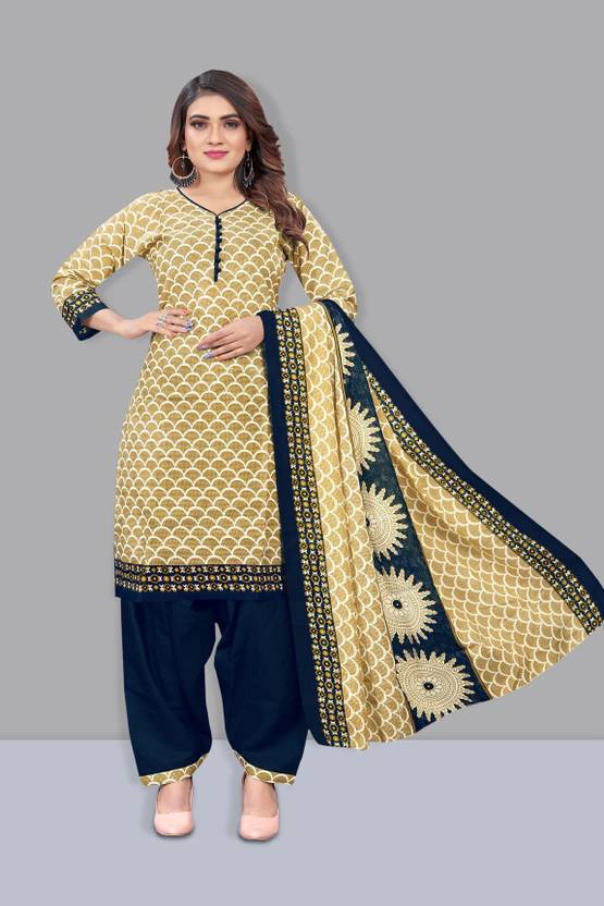 Beautiful Suit look pretty like never before.Wearing this Beige Color Suit which made from Rajnandini with Navy Blue Colored Printed Cotton Bottom and Beige And Navy Blue Colored Cotton Dupatta.Suit has also decorative work like Printed.This beautiful suit features a classy Printed Work all over,which makes it a smart pick for all occasions. You can wear this Suit in different styles. You can wear it occasionally or casually.