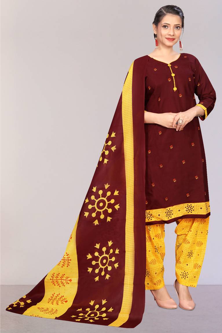 Beautiful Suit look pretty like never before.Wearing this Maroon Color Suit which made from Rajnandini with Yellow Colored Floral Print Cotton Blend Bottom and Maroon & Yellow Colored Cotton Blend Dupatta.Suit has also decorative work like Floral Print with Fancy buttons.This beautiful suit features a classy Printed Work all over,which makes it a smart pick for all occasions. You can wear this Suit in different styles. You can wear it occasionally or casually.